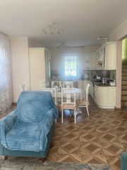 О ДОМЕ: Ключевым преимуществом объекта является продуманная и комфортная планировка для постоянного проживания. На первом этаже расположена просторная кухня-гостиная площадью 43,2 кв. м со вторым светом, что создает ощущение простора и наполняет помещение естественным светом. Из зоны гостиной предусмотрен выход на просторную террасу 32 кв. м, ориентированную таким образом, что на ней всегда можно найти тенистый уголок для отдыха в летнюю жару. Дополнительное удобство обеспечивает прямой выход из дома в гараж на 22,4 кв. м, также доступный с улицы.
