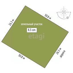 Участок правильной формы размером 27*31, мерой 8,31 сотки (831 кв.м.).