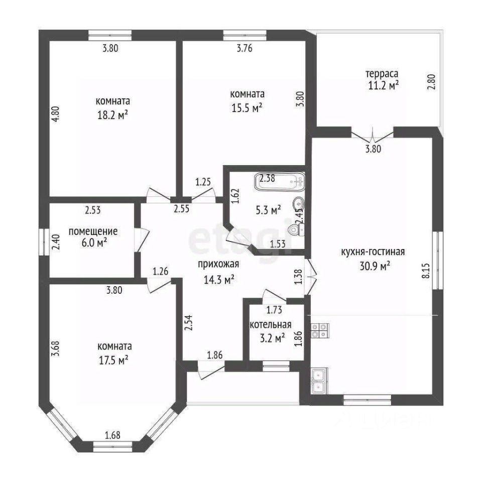 * котельная площадью 3,2 кв.м.;