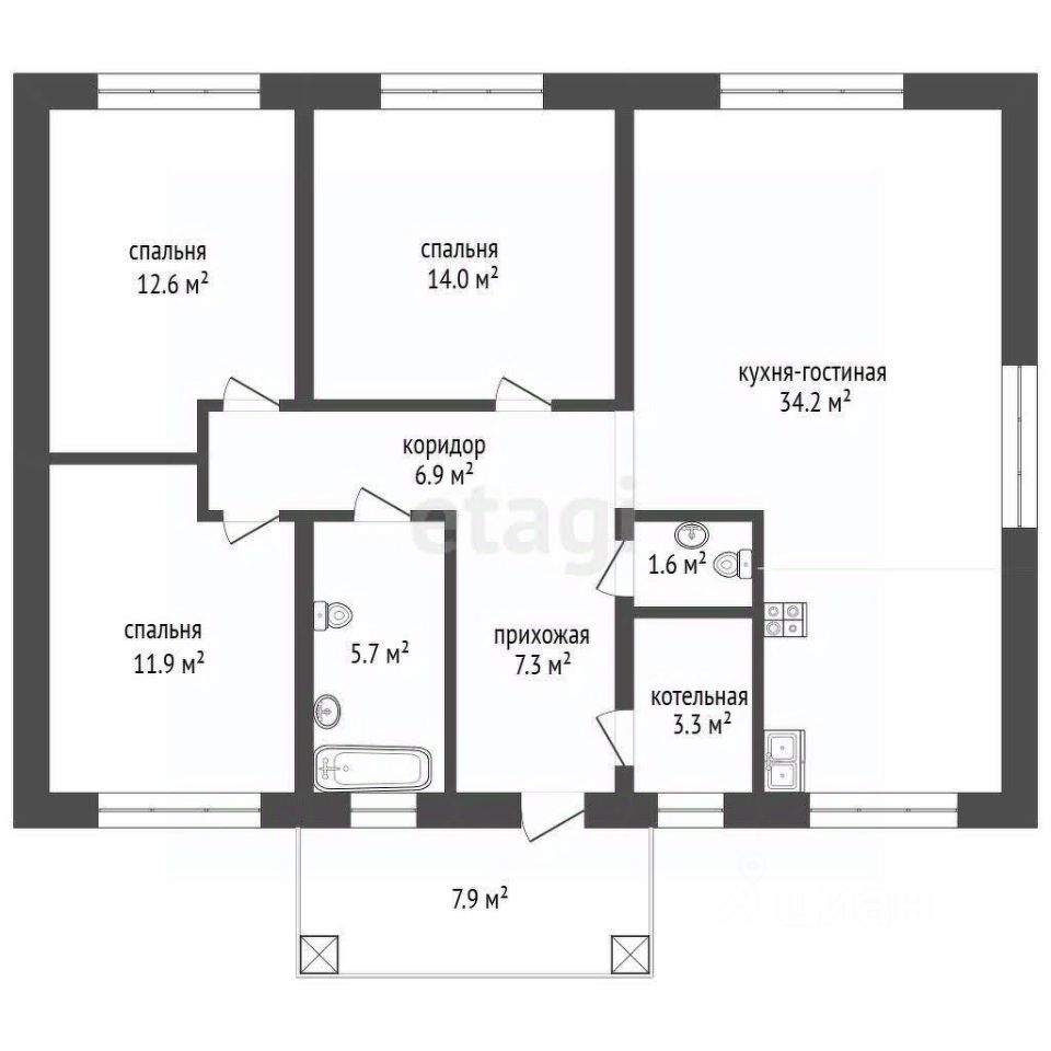 -Удобная и комфортная планировка: 3 изолированные спальни + шикарная кухня-гостиная 34 кв.м., 2 с/узла, котельная.