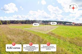 Площадь: 8,8 соток (идеальный размер для строительства частного дома и обустройства сада) .