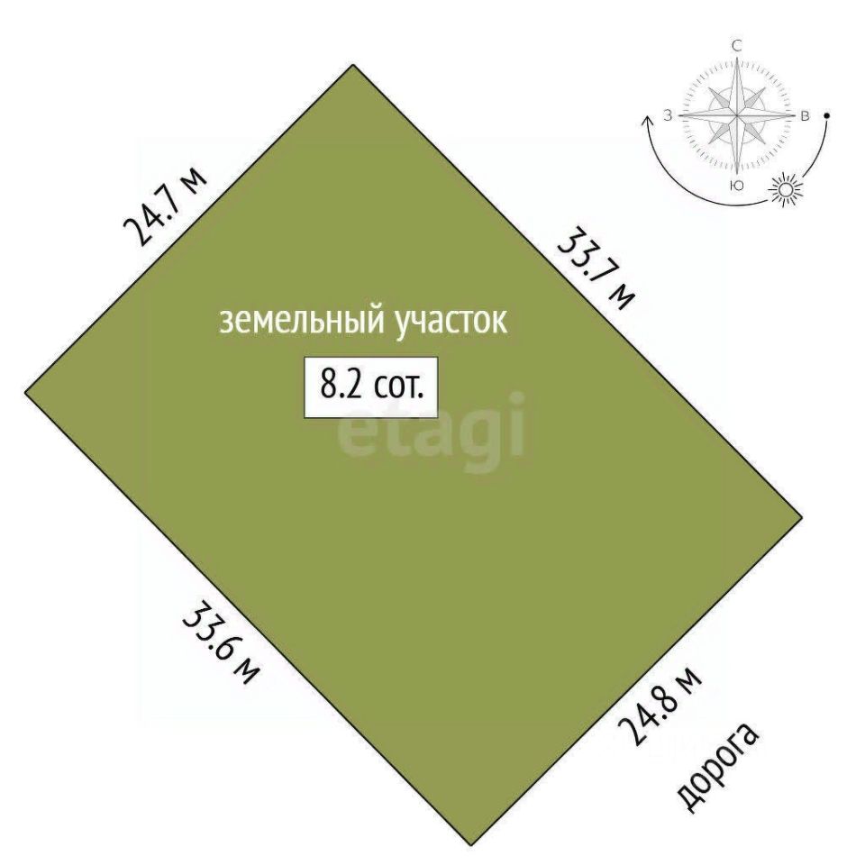 Площадь участка 8.23 сотки. Высокое, ровное место. Нет зон подтопления. Участок правильной формы.