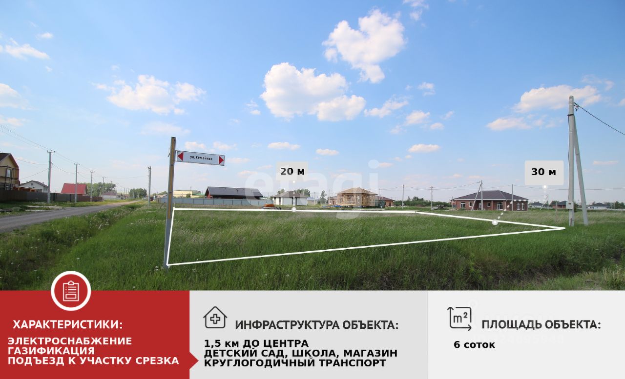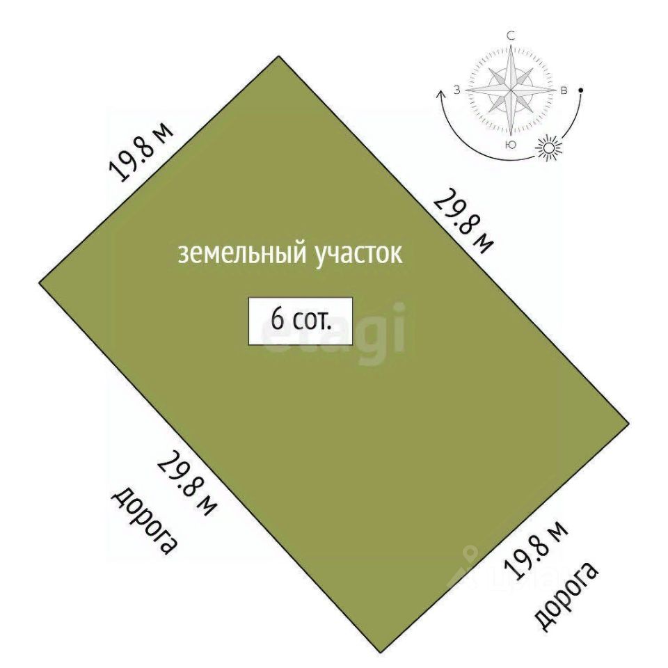 Площадь — 6 соток, участок правильной формы — идеально подходит для строительства загородного дома. Пространства достаточно, чтобы разместить дом, баню, гараж и зону отдыха.