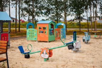 Рядом — детский сад, школа, магазины, аптека и больница.