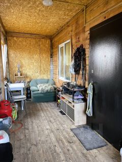 Участок ухожен, имеет правильную прямоугольную форму. На нем расположена хозяйственная постройка для хранения инвентаря.
