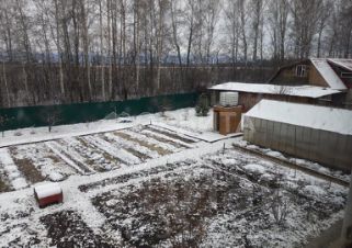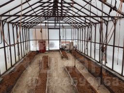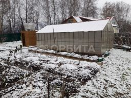 Огород с теплицей и грядками за домом, ближе к лесу.
