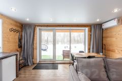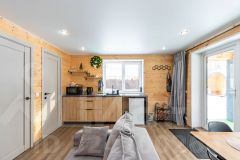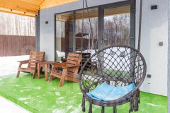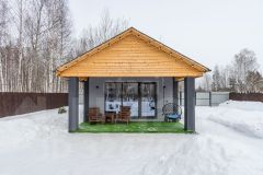 Дом + терраса (общая площадь 41 кв,м) готовый для круглогодичного проживания. В дом заведены все коммуникации, свет, вода, имеется вся необходимая мебель для проживания, кухонный гарнитур, техника, диван, кровать, стол, стулья, кондиционер, предметы декора такие как шторы, полочки, светильники. На террасе стулья и качелью. Просыпатья утром с солнышком под пение птиц мне кажется самым прекрасным, что может быть... света в доме очень много, окна максимально пропускают свет за счет своих размеров