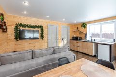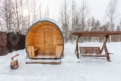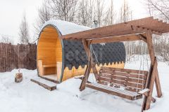 На территории находится баня-бочка, костровище, мангальная зона, качели, участок ровный с газоном, по периметру забор с калиткой и воротами, можно заезжать на территорию и парковать машину