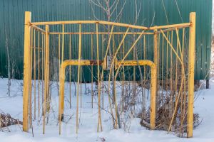 Участок имеет прямоугольную форму, границы обозначены межевыми колышками.