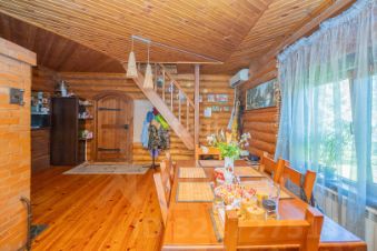 Продается загородный двухэтажный дом для большой семьи в районе озера Андреевское. Год постройки дома 2010 год, реновация была в 2019 году. Общая площадь 190 кв.м. на территории размером 14,3 сот земли. Дом с картинки с самым необычным дизайном для круглогодичного проживания, построен из высококлассных строительных материалов. Внутри жилого дома всюду изысканный уют и продуманная рациональность, сделан ремонт из качественных материалов. На первом этаже большая комната ~ 70 кв..м, небольшая комната ~8 кв.м, кухня 8 кв.м, коридор 12 кв.м, туалет 8 кв.м. Второй этаж свободная планировка, можно поделить на две комнаты. На территории двора присутствуют и другие постройки для приема гостей и релакса: Баня размером 6м-6м на берегу пруда, капитальная беседка 6м-5м с монгальной зоной, подсобные помещения 6м-5м, есть собственный пруд. Земля разработана, посажены взрослые березы, кустарники и другие декоративные деревья. Летом во дворе царство цветов и зеленых лужаек, а зимой забава для детей - собственный каток в небольшом пруду. Всего несколько минут до большого озера Андреевское.
