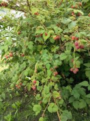 Участок обрабатывается, земля плодородная, много различных насаждений: кусты черной и красной смородины, черноплодная рябина, малина, жимолость, молодые вишни, крыжовник, ирга и др.