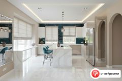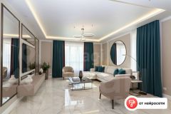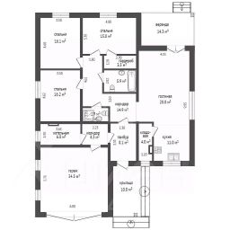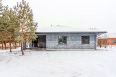 Внутренняя планировка включает в себя просторную кухню-гостиную площадью 40 м2 с кладовой, три спальни площадью 16 м2, одна из которых со своей гардеробной, ванную комнату площадью 5,9 м2 и отдельный санузел, котельную. Удобный гараж на 2 автомобиля с подъемными воротами и выходом в дом обеспечит вам комфортный доступ к автомобилю.
