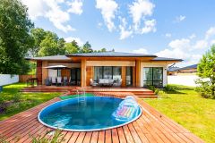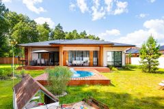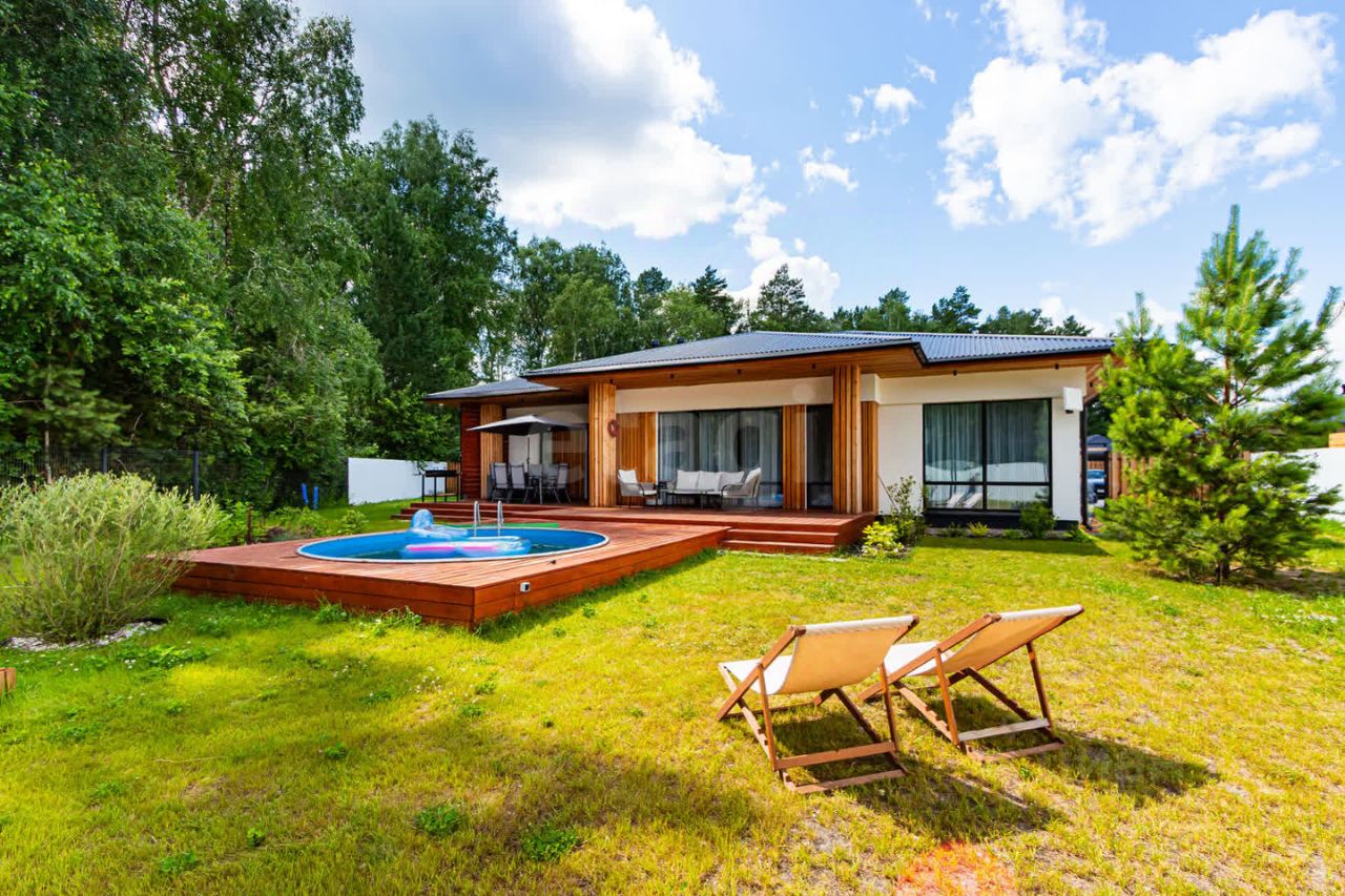 На придомовой территории расположен морозоустойчивый каркасный бассейн, имеющий выход с террасы, а также гараж, что удобно для хранения крупногабаритных вещей и автомобиля. Участок граничит с лесом, что создаёт уникальную атмосферу уединения и спокойствия.