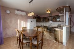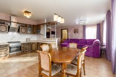 Первый этаж: просторная кухня-гостиная, объединенная по стилю и функциональности, образующая яркое сердце дома и центр семейной жизни. Здесь комфортно принимать гостей, готовить и отдыхать в едином пространстве. Дополнительный кабинет выполнен в формате отдельной рабочей зоны и по совместительству служит домашней библиотекой — идеальное место для ежедневной продуктивности и тихого чтения.