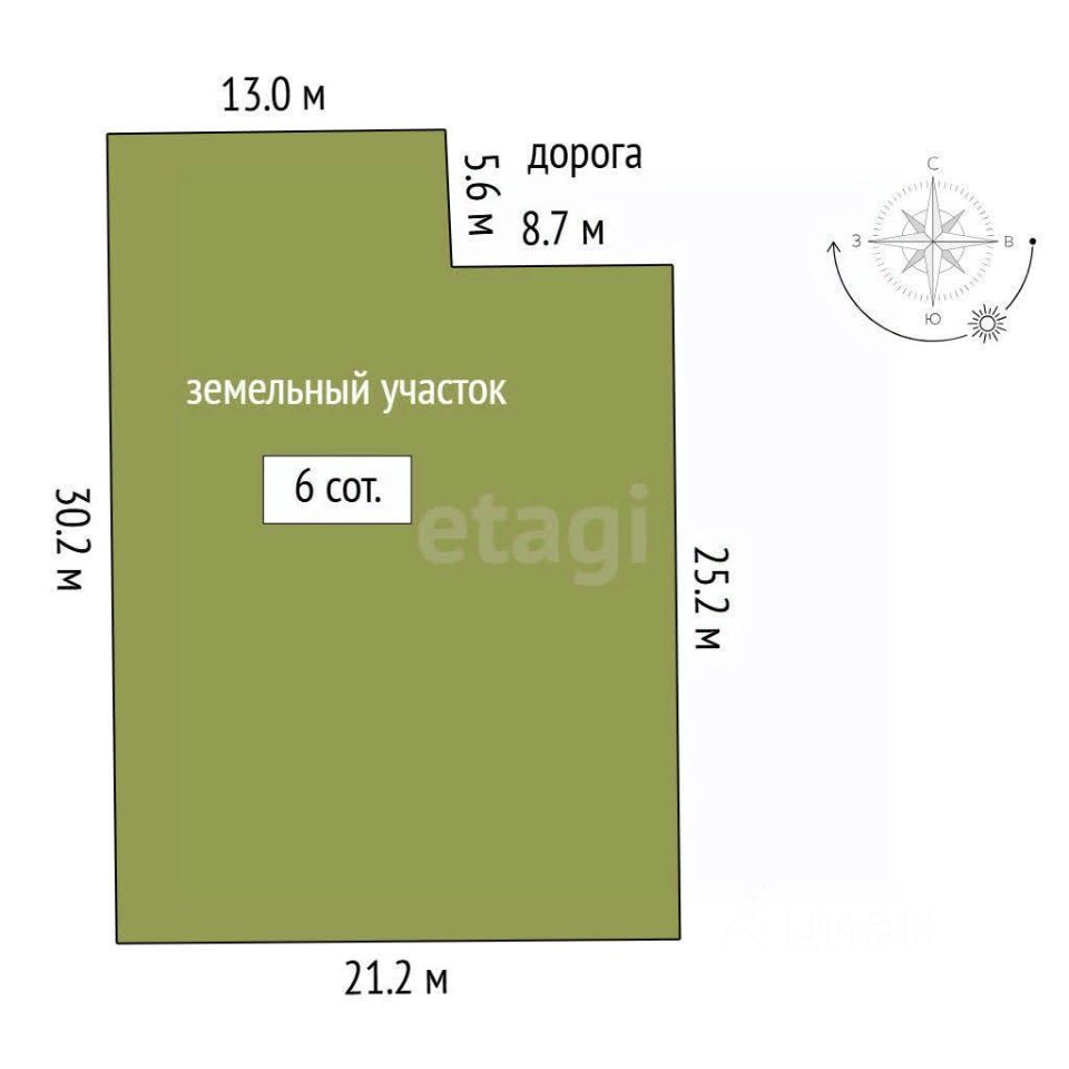 • Площадь: 6 соток - оптимальный размер для строительства дома и обустройства участка.