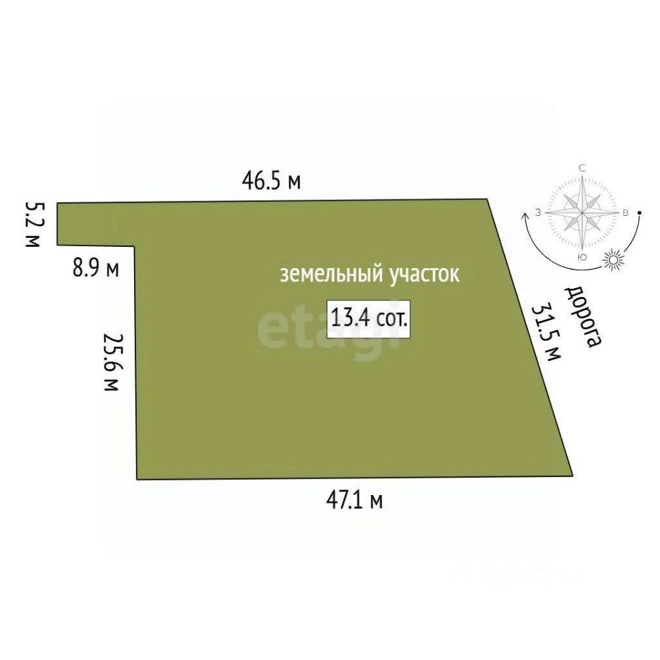 • Площадь: 13.5 соток - оптимальный размер для строительства дома и обустройства участка.