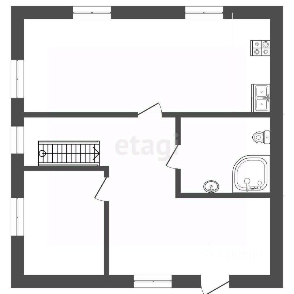 На первом этаже спальная комната, санузел и большая кухня гостиная.