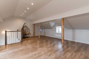 На третьем этаже 30 кв.м., сделан ремонт. Можно зонировать комнату по своему желанию. Одно мансардное и одно небольшое окно.