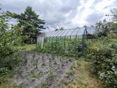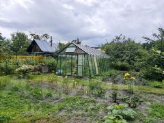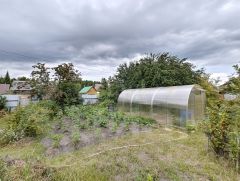 6 яблонь (разные сроки созревания) Смородина, малина, жимолость Ирга и другие плодово-ягодные насаждения (уже плодоносят!) .4 сливы Два дачных домика:Брусовой дом с печным отоплением — подходит для проживания до поздней осени, при желании может быть утеплён для круглогодичного использования. Функционирующая баня Две теплицы — обеспечат вас свежими овощами весь сезон