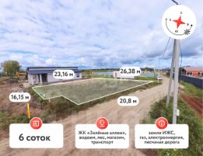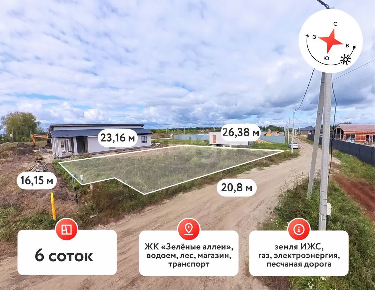 Предлагаем к продаже земельный участок в прекрасном месте рядом с ЖК "Зеленые Аллеи" для строительства собственного дома.