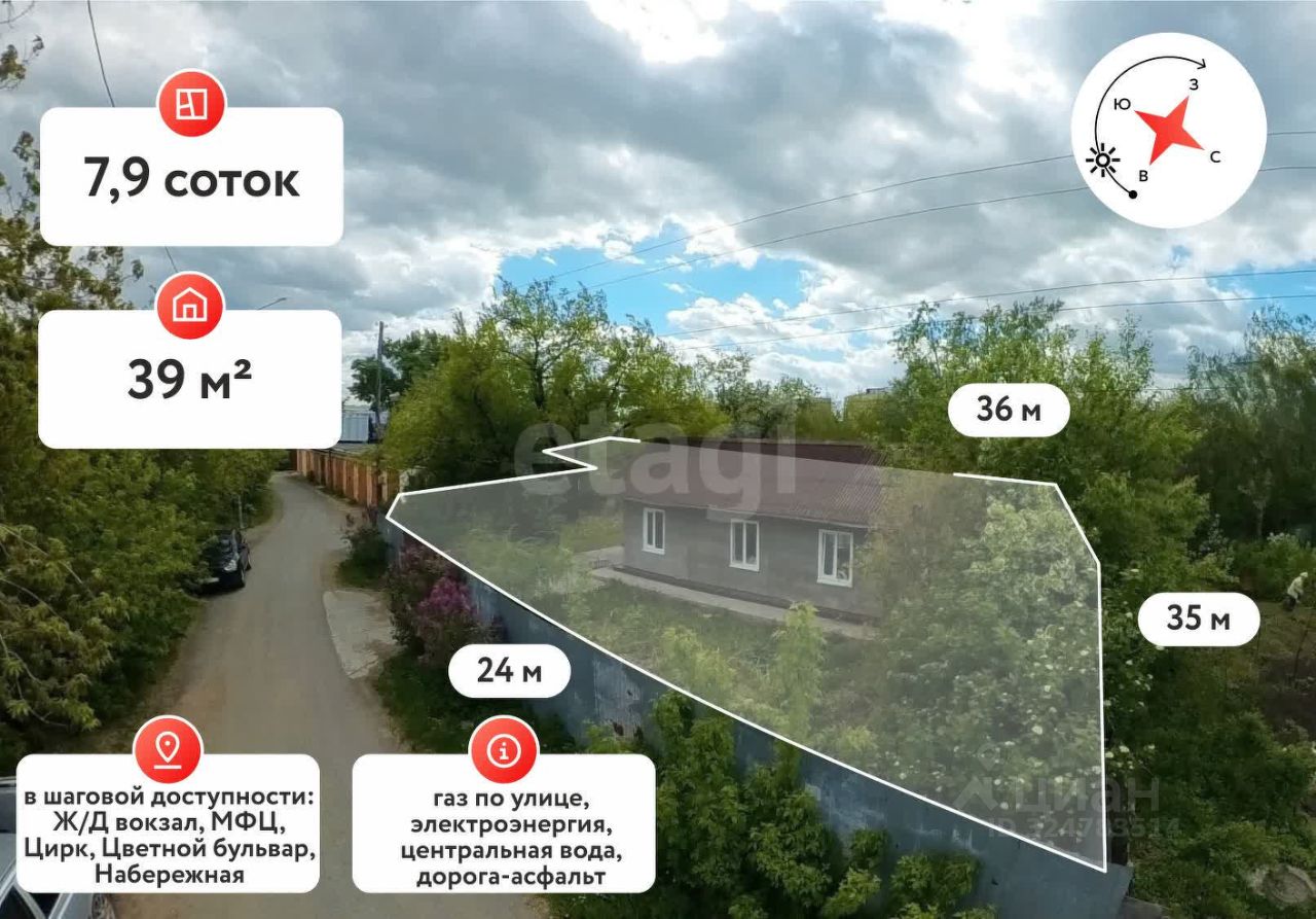 Продам дом в самом центре города! Дом 2015 года постройки, площадью 40 кв.м. на участке 8 соток. Технические характеристики : фундамент -сваи,стены-брус,кровля- ондулин, высота потолков 250 см. Коммуникации :водоснабжение-центральное, водоотведение-септик 7 куб.,отопление-электрическое + теплый пол, система вентиляции, имеется водонагреватель воды, капитальный погреб 2*3 м. Рядом с домом проведен газ- возможность подключения. В доме выполнен косметический ремонт. При продаже остается: кухонный гарнитур, электрическая плита, шкаф-купе. Участок огорожен профнастилом, имеются насаждения. Рядом с домом имеется бетонированная площадка. Инфраструктура: в шаговой доступности Цветной бульвар,театр,набережная,цирк,Горсад, ЖД вокзал. Транспортная развязка хорошая, в любую сторону города выезд. Рядом находится гаражный кооператив, сама улица спокойная без активного транспортного потока, благодаря чему тихо. Участок без дополнительных построек, что позволяет вам реализовать свои замыслы в полном объеме.
