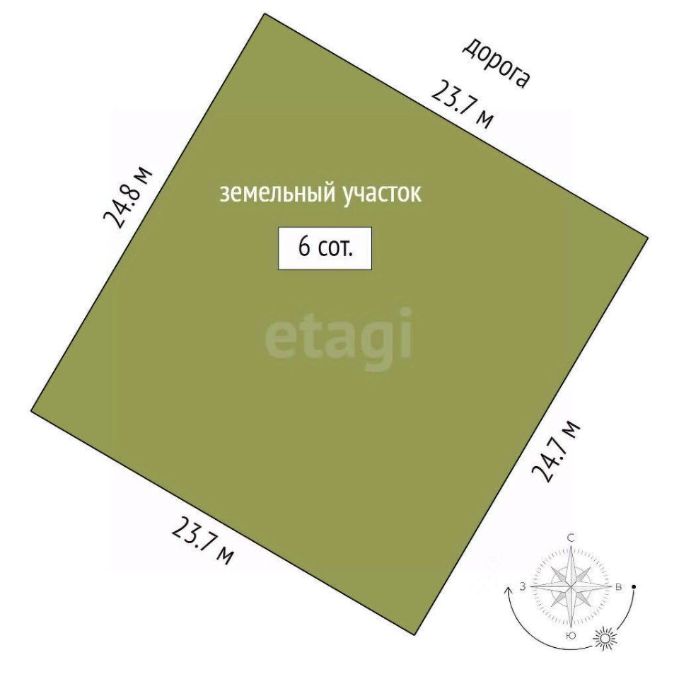 Участк 6 соток с категорией ИЖС (индивидуальное жилищное строительство).