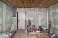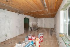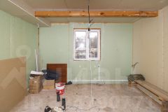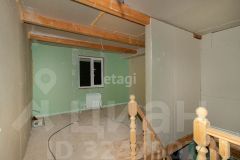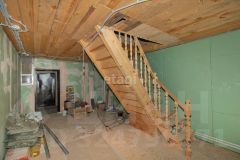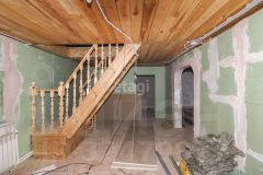 На второй этаж ведет деревянная лестница, есть две комнаты и гардеробная.