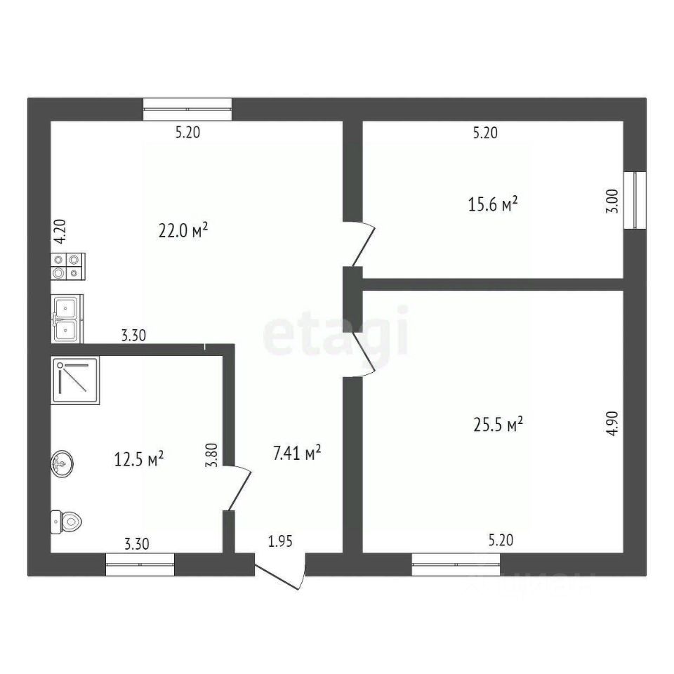 Продуманная планировка: кухня-гостиная 22 м кв., две изолированные комнаты 16 и 26 м кв., большой санузел 12.2 м кв.. При этом несущая стена одна - разделяющая коридор и комнаты. Можно планировать под себя, как пожелаете.