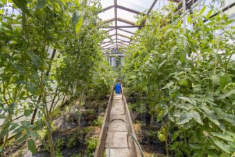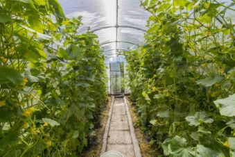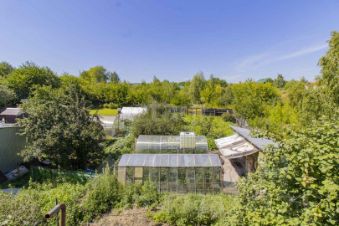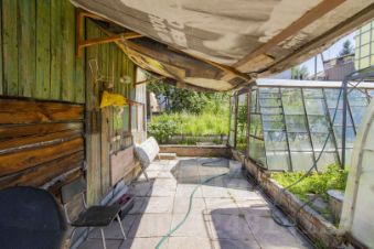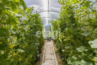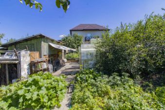 Благоустроенная территория включает гараж с автоматическими воротами, две теплицы для выращивания овощей и зелени, а также хозяйственные постройки для хранения инвентаря.