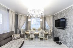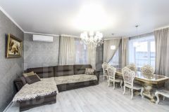 Внутри вас ждет свежий ремонт в классическом стиле: натяжные матовые потолки, стильный ламинат и керамогранит на полу создают атмосферу уюта и элегантности. При продаже остается вся мебель и частично бытовая техника, что позволит вам сразу же наслаждаться новым пространством.