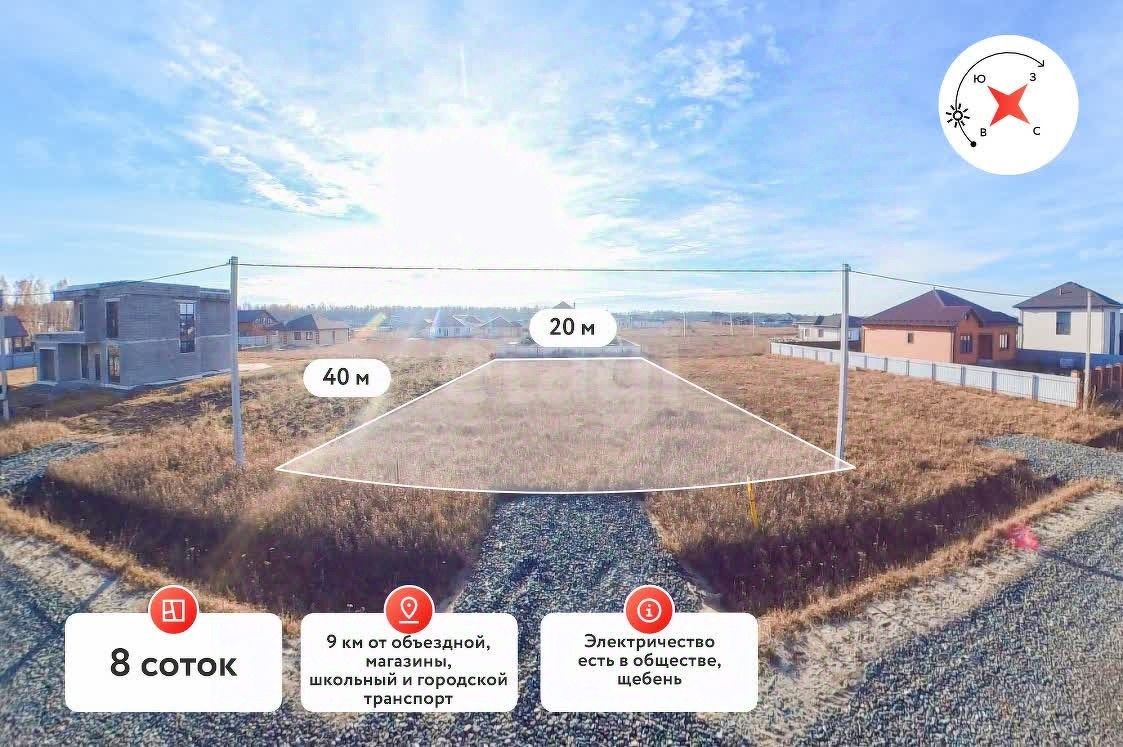 Участок ровный,прямоугольный, площадью 8 соток — назначение ИЖС