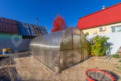 На участке имеется ухоженная теплица, обильно плодоносящие грядки с овощами и множеством фруктовых деревьев. В частности, клубника радует обильным урожаем до самых заморозков.