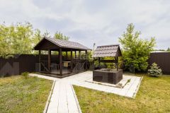На участке также имеется баня с просторной террасой, зоной отдыха и сауной, выполненной из лиственницы, что добавляет особый шарм и атмосферу уюта. Участок разделен на две зоны: первая зона включает в себя дом, большую детскую площадку, беседку и баню, где вы сможете проводить время с семьей и друзьями. Вторая зона предназначена для хозяйственных нужд и включает две теплицы, гараж и разнообразные насаждения, что позволит вам наслаждаться плодами собственного труда.