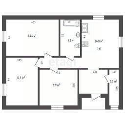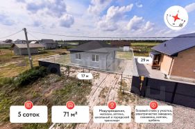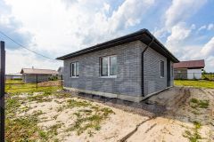 Планировка дома продумана до мелочей: просторная кухня-гостиная (16 кв. метров) с выходом на участок, три светлые комнаты, а также большой совмещенный санузел и котельная. Дом выполнен с улучшенной черновой отделкой: отштукатуренные белые стены, стяжка пола, разводка электричества, система отопления с тёплыми полами, электрокотел, септик переливного типа и скважина глубиной 43 метра.