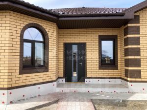 Стены: керамзитоблок, утеплитель толщиной 100 мм, облицован керамическим кирпичом.