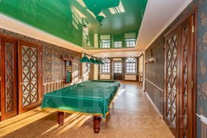 Третий этаж-зона отдыха. Оснащён бильярдом, на полу пробковое покрытие выполняет функцию шумоизоляции, есть мини бар, а также домашний кинотеатр с комфортными креслами-реклайнерами. Отличный вид с балкона во двор. Также есть две спальные комнаты. Во всех комнатах установлены двери из шпона оттенка красного дерева.