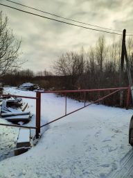 До самого участка асфальт, шлагбаум, до ближайшего соседа 10м. Не будет споров с соседями из-за заборов, стоянки, проездов! Рядом газ, свет. На 1/4 части участка растут высокие деревья.