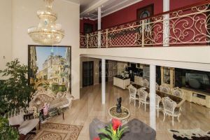 На второй этаж ведет массивная лестница украшенная кованым железом, с удобными широкими ступенями.