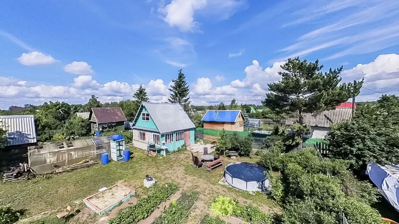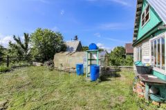 Участок огорожен и имеет индивидуальный закрытый въезд на улицу, что обеспечивает уединение и безопасность. На территории есть помещение для хранения инвентаря и теплица, которая требует небольшого ремонта.