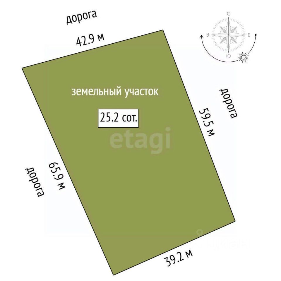 К участку можно подъехать с трех сторон, две их них с главных дорог ширина 59,5 с одной стороны и 42,9 ширина второй стороны, третий подъездной путь шириной 65,9