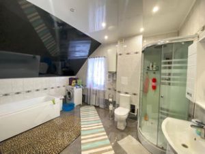 Предлагается к продаже просторный, светлый, очень теплый двухэтажный дом. Внутренняя отделка выполнена из современных материалов. На стенах обои. На полу первого этажа на кухне плитка (пол с подогревом), в гостиной ламинат. Второй этаж во всех комнатах - ламинат, в санузле плитка. Потолки везде натяжные. На первом этаже располагается кухня, гостиная, комната, санузел. На втором этаже 3 спальни, гардеробная, санузел. На участке находится, капитальный гараж, закрытая беседка, баня. Территория по периметру ограждена. Участок ухожен, имеются различные насаждения. Своя скважина 34 метра глубиной, установлены очистительные системы воды, дом отапливается газом. Изюминкой этого дома является граничащий с участком сосновый лес! В шаговой доступности находится продуктовый магазин и хоз. товары. Автобусная остановка находится в пешей доступности, 11 рейсовых автобусов. Также ездит школьник. Всего 10 минут до города на машине. Хорошие соседи. При продаже в доме остаётся абсолютно вся мебель и бытовая техника. Документы к продаже готовы! Никаких обременений.