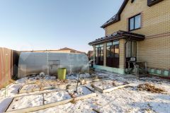 Дом расположен на угловом участке площадью 8 соток, что обеспечивает дополнительный въезд и возможность организовать парковку для нескольких автомобилей. Во дворе вас ждут теплица для любителей садоводства, хозблок для хранения инструментов и небольшая баня, где можно расслабиться после долгого дня.