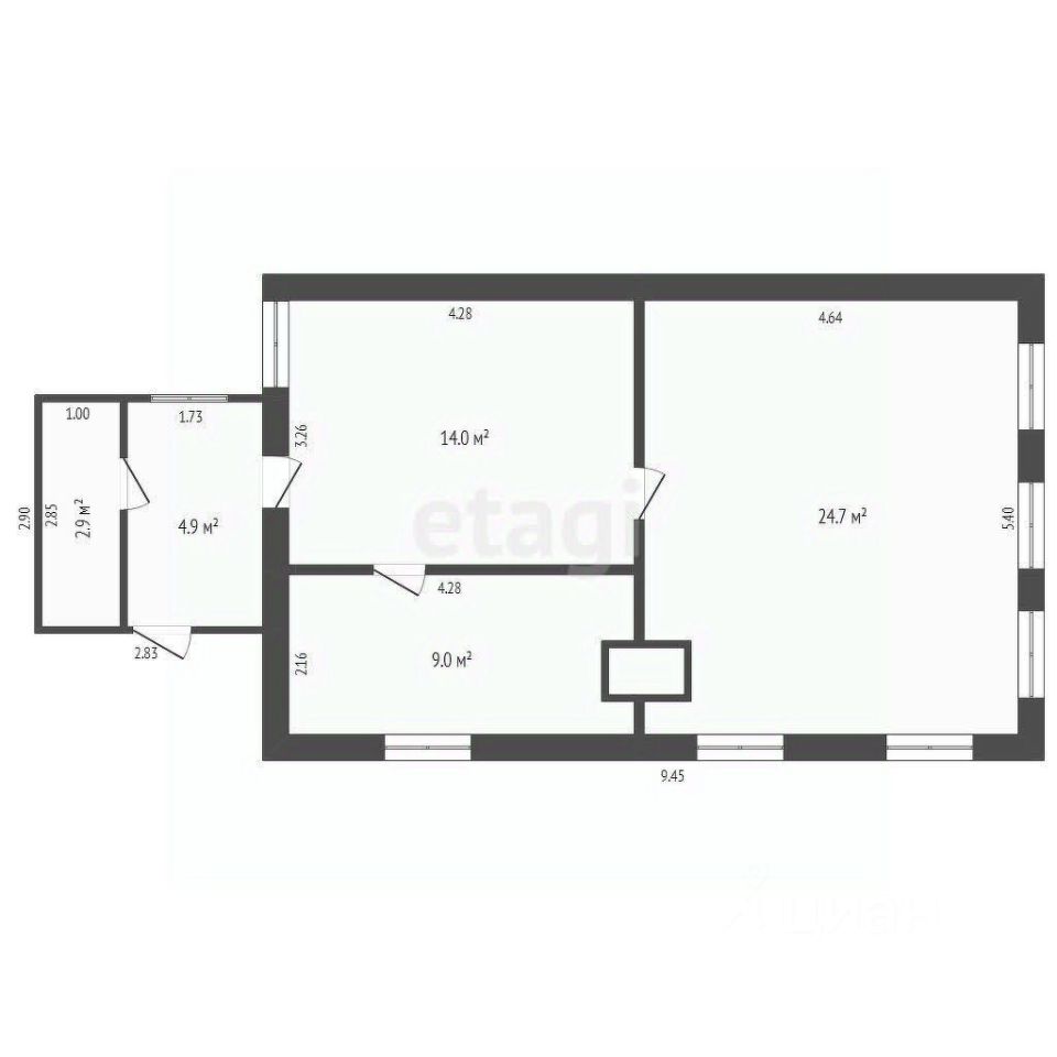 Площадь 1/2 дома: 52.6 м²