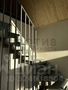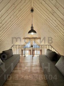 * Комната (19 кв.м.) на втором этаже открытого типа (с ограждением из металлокаркаса вместо стены) с двумя диванами, двумя полками, журнальным столиком и безопасной лестницей.