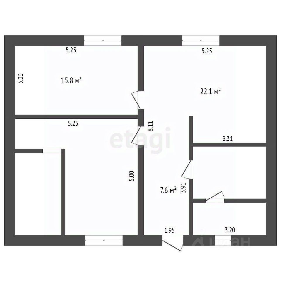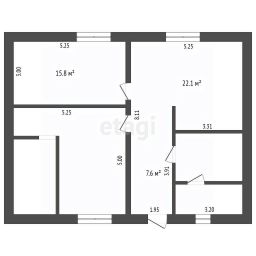 Две спальни, кухня-гостиная, гардеробную, котельную и большой совмещенный санузел.