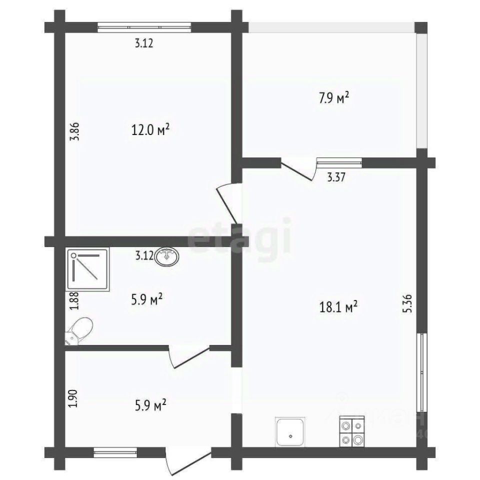 Объект построен из профилированного бруса на надежном винтовом фундаменте, что гарантирует долговечность и стабильность конструкции. Планировка включает просторную кухню-гостиную 18 м² и изолированную комнату 11 м², а также удобную террасу для отдыха.
