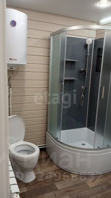 Санузел оборудован душевой кабиной, унитазом, раковиной и бойлером для бесперебойного горячего водоснабжения.