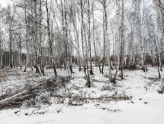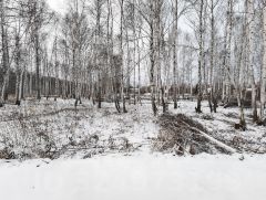 На участке растут березы — можно оставить для уюта или расчистить под строительство.