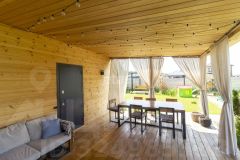 Продается отличный дом с террасой, обставленной уютной мебелью. Внутри дома парная, моечная, комната отдыха с двойным светом, панорамным камином, кухней и мебелью. На втором этаже есть окно в крыше, где можно смотреть на звезды, поводя романтические вечера. В доме сделан дизайнерский ремонт с новой мебелью и техникой. Участок правильной формы, разработан, огорожен красивым забором. Есть взрослые садовые деревья и кустарники, ягоды. Для удобства сделан авто полив, чтобы ваш газон был всегда зеленый.На территории выложены брусчатые дорожки, установлено освещение и сделана детская площадка.На подиуме на сваях установлена качель под заказ. Есть хозблок, колодец, уличный туалет.
