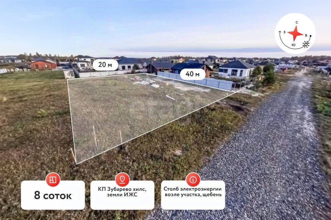 земельный участок, 8 соток в КП "Зубарева Хиллс". Категория земли ИЖС. Дороги - асфальтовая срезка, газовый стояк на границе участка. Электричество - подземное.